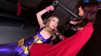 In the heat of the night, a superhero costume party was underway at an underground BDSM sex club, where every attendee donned colorful outfits as they mingled with their fellow superheroes.Among them was a sultry duo dressed as lesbian superheroes - X and the cosplayer, both clad in vibrant costumes that accentuated their impressive physiques and ample cleavage.With their eyes locked onto each other, their lust grew stronger as they fed off of one another's desire, knowing full well what awaited them in the shadows of this hedonistic gathering.The air was thick with anticipation, and as X and the cosplayer exchanged flirtatious glances, it became apparent that this party had taken a decidedly kinky turn.Eager to explore each other's limits, they sought out an abandoned room where they could indulge their fantasies in complete privacy.Once there, X began to undress the cosplayer, taking her time with each piece of clothing that she peeled away.Her eyes traced every curve and crevice of the cosplayer's body, her passion simmering just below the surface as she imagined the pleasures awaiting them.As X unzipped the front of the costume, she caught a glimpse of the cosplayer's womanhood – already wet and begging to be touched.Unable to resist any longer, she dropped to her knees and began exploring with her mouth, using every trick at her disposal to push the cosplayer towards climax after climax.The cosplayer, in turn, clutched X's head to her sex, panting and moaning in delight as she tasted her own sweet nectar, drenched in a mixture of lust and power.It was time for something even more intense.The cosplayer mounted X on the bed, their bodies colliding with passionate fervor, their breaths coming in heavy gasps.The two superheroines began to grind against each other, the friction building towards an explosive crescendo of ecstasy, as they rode waves of pleasure like never before.But there was more that awaited them – a hidden chamber within the depths of their passion-driven adventure.As the cosplayer's climax approached, she leaned into X and whispered, Let's take this to new heights, igniting in her an insatiable desire for even greater thrills.They continued their erotic dance, X guiding the cosplayer through each curve and turn as they navigated this new frontier of sexual ecstasy.With each passing moment, X and the cosplayer grew closer, their connection forged not only in carnal passion but also in an unbreakable bond of trust.The room was charged with energy, pulsating in time to the rhythm of their pounding hearts and relentless desire.And so, X and the cosplayer continued to explore every corner of their shared fantasy, pushing past limits, discovering new pleasures, and surrendering completely to each other's passion.As the night wore on, they became not just lovers but superheroines of their own erotic adventure – an unforgettable journey into the realm of unbridled lust and desire.